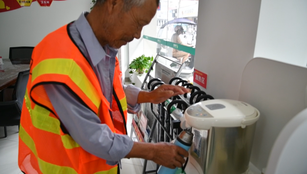 望江縣郵政雷池路支局戶外勞動者驛站環(huán)衛(wèi)工人正在接熱水