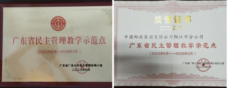 近日,廣東省廠務(wù)公開民主管理協(xié)調(diào)小組辦公室發(fā)布《關(guān)于確定全省民主管理教學(xué)示范點(diǎn)和職工代表培訓(xùn)師名單的通知》,陽(yáng)江市分公司被廣東省總工會(huì)授牌命名為“廣東省民主管理教學(xué)示范點(diǎn)”。