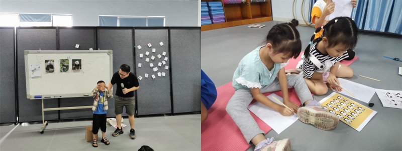 成都大運(yùn)會(huì)吉祥物“蓉寶”近期圈粉無數(shù),特邀美術(shù)老師戴偉江拿出了熊貓的各種情緒表情包,一下子便吸引了小朋友們的目光。戴老師一邊介紹表情包簡(jiǎn)筆畫的技巧,一邊讓小朋友上臺(tái)示范表演,解鎖各種情緒表達(dá)。小朋友們?cè)诎准埳习l(fā)揮創(chuàng)意,描繪出獨(dú)一無二的“蓉寶”。