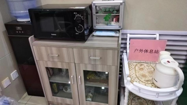 新建“郵愛驛站”配備了桌椅、飲水機、微波爐、應(yīng)急藥品、充電寶等設(shè)備和工具,能提供包括休息、手機充電、飲水、雨傘、應(yīng)急外敷藥品以及飯菜加熱等服務(wù),并安排有專人負責(zé)日常管理和維護工作。