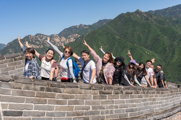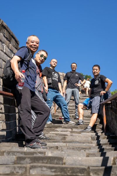 居庸關長城在北京界內的長城中可謂是第一要關,作為世界文化遺產和全國重點文物的居庸關長城,屹立山巔、雄風猶在。職工們首先來到由毛主席題詞的“不到長城非好漢”石碑前打卡拍照,大家都有一種迫不及待地想征服這座京北第一要關。拍照結束,自由活動時間,大家互相加油、互相鼓勵、互相提醒,大家都憋著一股勁兒,一路從六號敵樓到七號敵樓,再到八號、九號……用了兩個半小時的時間,所有人就全部來到了十四號敵樓。雖然有的人滿頭大汗、有的人衣服濕透、有的人腿在發(fā)抖,但是回頭看看登過的這九座敵樓的高度、坡度,職工們都覺得自己太棒了。