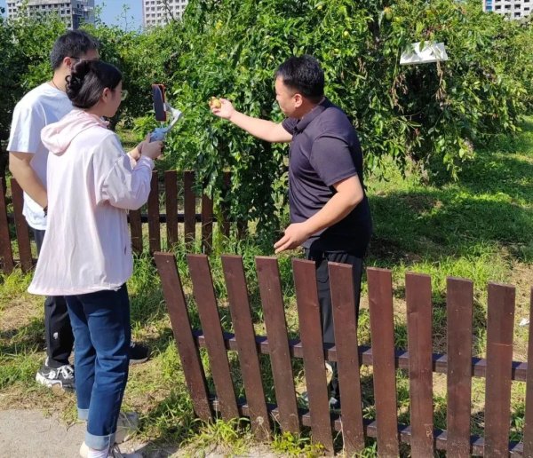 漫步北宮果園,棗樹一望無際,白棗、冬棗、葫蘆棗掛滿枝頭?!按蠹铱吹降倪@片樹上的果就是長辛店白棗,它是農產(chǎn)品地理標志產(chǎn)品。這個棗形狀長圓形,皮很薄,肉脆核小,吃起來多汁味甜,符合大家對‘夢中情棗’的一切想象?!?月13日,豐臺團區(qū)委聯(lián)合豐臺區(qū)郵政分公司、北京綠野田園休閑農場在北宮鎮(zhèn)中華名棗園開展“青耘中國·秋收碩果”直播助農活動。