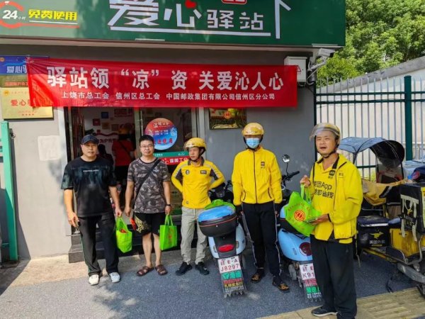 自今年8月以來,上饒市總工會、信州區(qū)總工會、信州區(qū)郵政分公司聯(lián)合開展了三期“驛站領(lǐng)‘涼’資 關(guān)愛沁人心”活動,借助“郵愛驛站”愛心平臺,為高溫下的戶外工作者們提供防暑降溫物資。這也是上饒市信州區(qū)分公司持續(xù)深入開展“我為群眾辦實(shí)事”的舉措之一,通過持續(xù)建設(shè)好郵愛驛站,為戶外勞動者提供“累了可歇腳、沒電來充電、渴了有水喝、飯涼能加熱”的貼心服務(wù)。(江西省郵政工會)