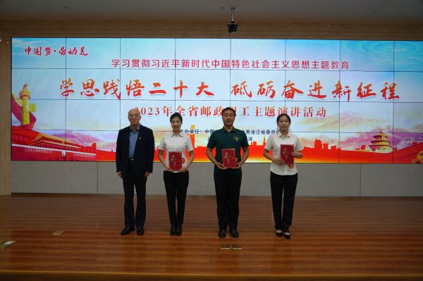 2023年9月26日,為學(xué)習(xí)宣傳貫徹黨的二十大精神,迎接中國工會十八大的召開,黑龍江省郵政工會在哈爾濱舉辦了2023年全省郵政職工“中國夢·勞動美——學(xué)思踐悟二十大 砥礪奮進新征程”主題演講比賽活動。全省各級郵政工會高度重視、精心組織,經(jīng)過層層選拔,來自全省郵政14個代表隊的26位演講選手參加了黨的二十大知識現(xiàn)場問答,展開了激情澎湃的演講角逐。經(jīng)過評選,3名職工榮獲一等獎、5名職工榮獲二等獎、8名職工榮獲三等獎、10名職工榮獲優(yōu)秀獎。省郵政工會評選出哈爾濱、牡丹江、大慶、雞西、伊春、大興安嶺地區(qū)、省分公司機關(guān)工會7個郵政工會為優(yōu)秀組織獎。同時,省郵政工會將在“黑龍江郵政”公眾號上擇優(yōu)展播獲獎選手演講視頻。