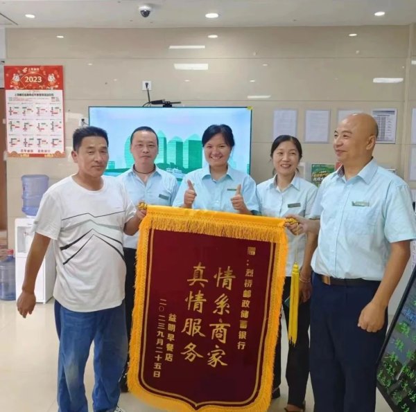 近日,江西省弋陽縣分公司烈橋郵政所隔壁早餐店的巫益民老板專程給網(wǎng)點(diǎn)送來了一面錦旗,口中連聲感謝。