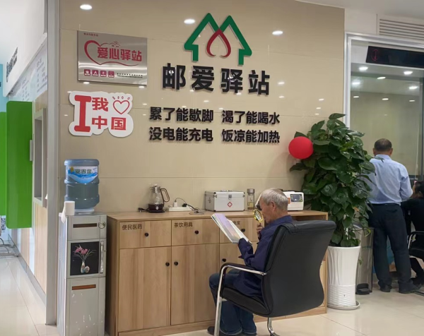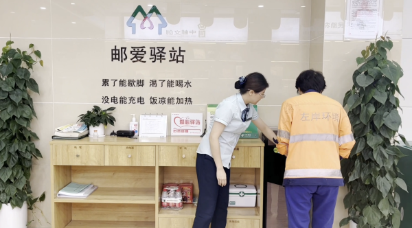 在位于重慶榮昌區(qū)行政中心地段及重要交通樞紐核心位置,網(wǎng)點面積達240平方米,服務(wù)人口約2.5萬人的富安郵政所,有這么一處溫暖之所:累了可以歇腳,渴了可以飲水,冬可取暖,夏可納涼,閑暇可讀書閱報,這,就是榮昌郵政傾力打造的“郵愛驛站”。截至2023年9月底,重慶市郵政工會已建成戶外勞動者服務(wù)站點295個,每個站點以志愿服務(wù)為切入點,均配備了沙發(fā)桌椅、飲水機、空調(diào)、微波爐、冰箱、充電器、應(yīng)急醫(yī)藥箱、愛心雨傘等生活服務(wù)設(shè)備設(shè)施,為環(huán)衛(wèi)工人、交警、外賣小哥、快遞員等戶外勞動者群體和廣大市民提供貼心服務(wù)。