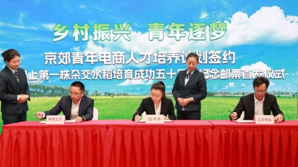 在簽約儀式現(xiàn)場,密云區(qū)副區(qū)長馬超與中國郵政集團有限公司北京市分公司副總經(jīng)理范小榮共同為世界上第一株雜交水稻培育成功五十周年紀(jì)念郵票和首日封揭幕,與會嘉賓也通過郵票這枚小小的“國家名片”,一起感受我國農(nóng)業(yè)現(xiàn)代化建設(shè)的歷史進程和在鄉(xiāng)村振興領(lǐng)域所取得的偉大成就。(北京郵政工會)