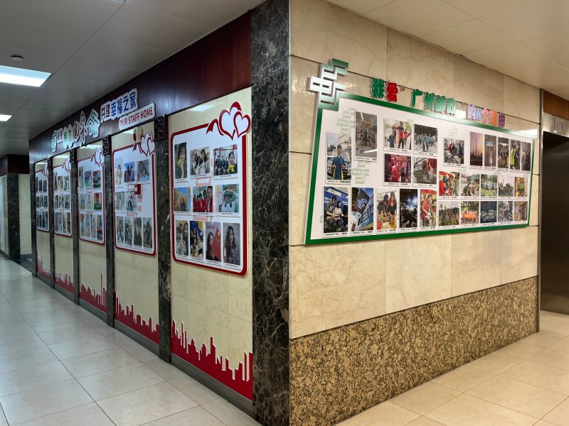 此外,為更好地展現(xiàn)員工的多彩生活,廣州市分公司還在職工飯?zhí)猛ǖ捞幵O(shè)立了員工風(fēng)采宣傳欄。宣傳欄的名稱牌采用異形立體設(shè)計(jì),內(nèi)容板塊則采用活頁設(shè)計(jì),便于更換主題和內(nèi)容,大大節(jié)省了制作成本。