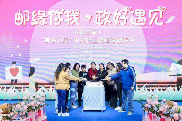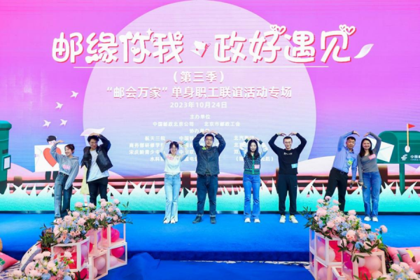 為貫徹落實中國工會十八大精神,當(dāng)好職工“娘家人” ,辦實工會“暖心事”,更好服務(wù)單身青年職工、搭建婚戀橋梁,使他們盡快走向婚姻殿堂,10月24日,北京市郵政分公司、北京市郵政工會攜手航天三院、商務(wù)部研修學(xué)院、宋慶齡青少中心、北汽集團(tuán)、北京公交集團(tuán)、水科院、中國移動北京公司、中國電信北京公司、中國鐵塔北京公司 、中國聯(lián)通北京公司、雙秀公園等11家單位,在中國宋慶齡青少年科技文化交流中心舉辦“‘郵’緣你我 ‘政’好遇見”第三季郵會萬家單身職工聯(lián)誼活動,來自12家單位的100余名單身職工參加活動。