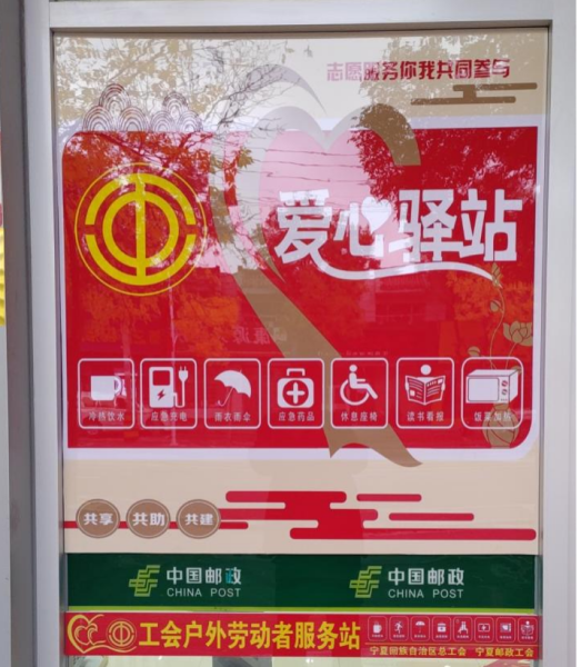城市的發(fā)展離不開勞動者的辛勤付出,為扎實落實“我為群眾辦實事”工作。近日,中衛(wèi)郵政工會結(jié)合工作實際,對沙坡頭區(qū)、中寧縣、海原縣臨街靠路、交通方便的網(wǎng)點場所各建造了2處“戶外勞動者服務(wù)站點”,全市共建6處,進(jìn)一步解決了環(huán)衛(wèi)工人、快遞小哥、外賣小哥、出租車司機、交通警察等戶外勞動者“吃飯難、喝水難、充電難、休息難、如廁難”等現(xiàn)實問題。