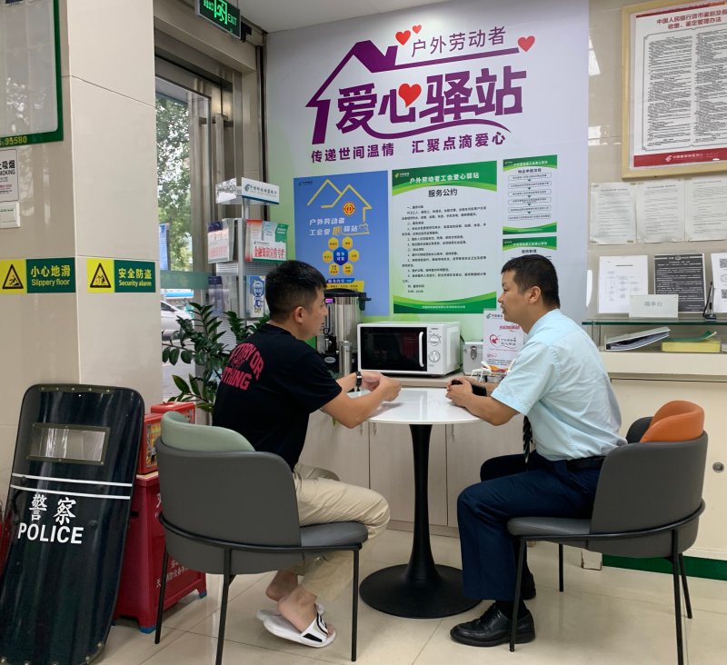 近年來(lái),中山市分公司不斷拓展新業(yè)態(tài)勞動(dòng)者群體服務(wù)陣地,致力于提供暖心優(yōu)質(zhì)的關(guān)愛(ài)服務(wù),累計(jì)建成戶(hù)外勞動(dòng)者工會(huì)愛(ài)心驛站22個(gè),其中選樹(shù)1個(gè)全國(guó)最美工會(huì)戶(hù)外勞動(dòng)者服務(wù)站點(diǎn),3個(gè)被廣東省總工會(huì)命名為省級(jí)愛(ài)心驛站。所有站點(diǎn)配套有空調(diào)、飲水機(jī)、微波爐、休息桌椅、免費(fèi) WiFi、應(yīng)急藥品等設(shè)施用品,保證戶(hù)外勞動(dòng)者“累了能歇腳、渴了能喝水、熱了能乘涼、沒(méi)電能充電、飯涼能加熱”,還充分整合各方資源,開(kāi)展防詐騙、防暑急救、保健理療、親子活動(dòng)等慰問(wèn)關(guān)愛(ài)活動(dòng),打通了服務(wù)員工群眾的“最后一公里”。