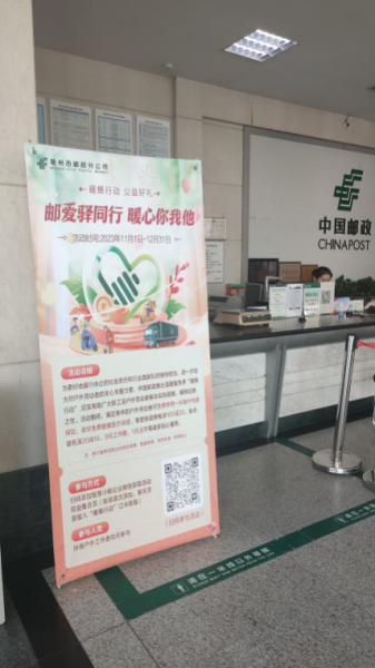 按照集團(tuán)工會(huì)關(guān)于開(kāi)展“溫暖服務(wù)季”活動(dòng)安排,為進(jìn)一步加大對(duì)戶外勞動(dòng)者的關(guān)心關(guān)愛(ài)力度,亳州市郵政工會(huì)提前謀劃,精心安排,在做好驛站提升服務(wù)的同時(shí),制作了30個(gè)“溫暖服務(wù)季”宣傳展架,分別布放到縣、區(qū)網(wǎng)點(diǎn)驛站,通過(guò)工作人員推介宣傳,幫助廣大職工及戶外勞動(dòng)解除后顧之憂。