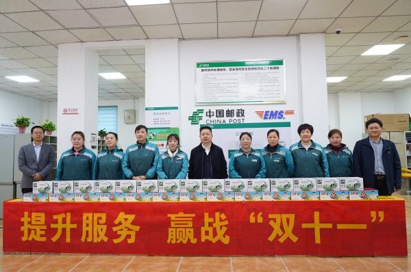 11月10日上午,駐馬店市分公司黨委書記、總經(jīng)理申瑞華,黨委委員、副總經(jīng)理、工會主席王開鋒,工會副主席李杰一行到驛城區(qū)郵政分公司攬投三部和市郵件處理中心。給奮戰(zhàn)在“雙11”一線的郵政攬投員、分轉(zhuǎn)員和郵運司機們送去牛奶、方便面、火腿腸等慰問品,為奮戰(zhàn)在一線的基層員工加油鼓勁。