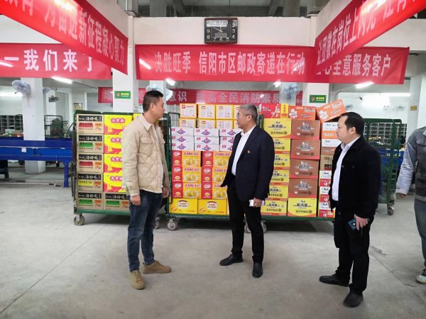 為打造“暖心旺季”,做好“雙11”寄遞生產(chǎn)服務(wù)支撐工作,11月10日,信陽市分公司黨委書記、總經(jīng)理萬松博,副總經(jīng)理田華豪,工會副主席彭杰一行到信陽郵區(qū)中心、市區(qū)分公司羊山攬投部看望慰問一線員工,為他們送上了方便面、火腿腸、面包、蛋糕等食品,帶去了市分公司黨委的溫暖關(guān)懷。(河南省郵政工會)