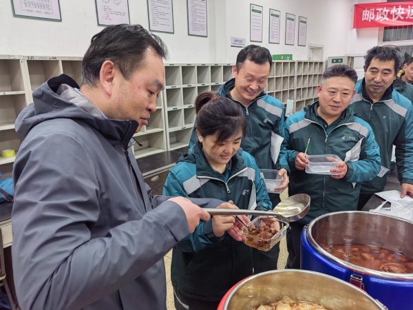 雙十一高峰期的序幕已然拉開,東城區(qū)分公司工會(huì)結(jié)合各支局的實(shí)際情況,廣泛聽取一線職工的真實(shí)呼聲,制定了今年雙十一的慰問方案。我們?yōu)閵^戰(zhàn)在一線的職工送去了熏雞、松仁肉肚、五香豆干、火腿腸、水餃、方便面、面葉、面包和牛奶來(lái)保障雙十一期間的能量補(bǔ)給需求。同時(shí)我們購(gòu)買精品五花肉,雞腿,蔬菜等食材,由區(qū)局食堂進(jìn)行專門加工,區(qū)分公司領(lǐng)導(dǎo)攜各部室組成送餐小分隊(duì),分別帶隊(duì)為一線投遞員們送去一桶桶的紅燒肉、烙餅和燒餅夾肉。讓在外奔波的投遞員就像回到了家一樣,吃上熱氣騰騰的可口能量餐。