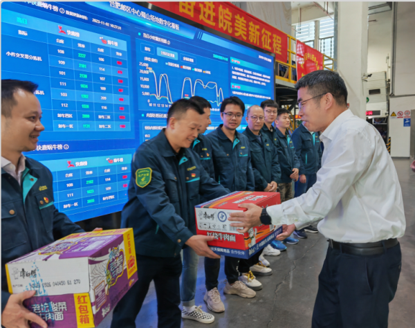 在“雙十一”旺季攻堅(jiān)戰(zhàn)來臨之際,合肥郵區(qū)中心黨委和工會(huì)組織時(shí)刻牽掛著一線員工。自11月1日起,中心黨委班子成員及工會(huì)部門負(fù)責(zé)人分別在中心皇藏嶼、蜀山郵件處理場地開展旺季生產(chǎn)暖心關(guān)愛活動(dòng),為大家送去牛奶、方便面等慰問品,對(duì)奮戰(zhàn)在“雙十一”前沿的員工表示親切的問候和真誠的關(guān)懷。 中心黨委書記錢志雄在蜀山場地生產(chǎn)現(xiàn)場與員工親切交談,了解旺季生產(chǎn)情況、員工生活情況及心理狀態(tài),強(qiáng)調(diào)場地所屬各級(jí)工會(huì)組織在旺季期間要做好“流動(dòng)之家”服務(wù),保障好員工的身心狀態(tài)。 中心副總經(jīng)理錢廣發(fā)在省運(yùn)輸中心辦公場地慰問一線郵運(yùn)駕駛員,對(duì)旺季期間堅(jiān)守在工作崗位的駕駛?cè)藛T表示感謝并送上慰問物資,叮囑大家一定要注意安全,并鼓勵(lì)大家要以飽滿的工作熱情、昂揚(yáng)的精神狀態(tài)做好業(yè)務(wù)旺季郵件運(yùn)輸工作。