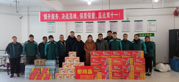 8:30分工會主席王悅、副主席張濱繼續(xù)驅(qū)車1小時將慰問品送到縣分公司郵件處理中心,與縣分公司總經(jīng)理張子淮、副總經(jīng)理李偉明共同慰問奮斗在“雙十一”戰(zhàn)線上的職工,市、縣公司領(lǐng)導(dǎo)將省郵政工會的溫暖以一種親切、關(guān)心、愛護的態(tài)度傳遞給了基層一線職工,極大的鼓舞了職工的工作干勁。
