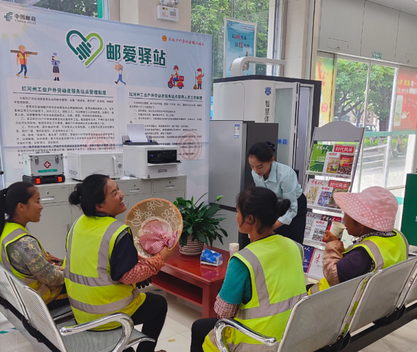7月份起,云南郵政在全省范圍內(nèi)開始建設(shè)“郵愛驛站”,各級(jí)郵政分公司主動(dòng)與當(dāng)?shù)乜偣?huì)匯報(bào),在選址、建設(shè)內(nèi)容、宣傳上下足功夫。建站以來,“郵愛驛站”結(jié)合網(wǎng)點(diǎn)物理環(huán)境,添置冰箱、微波爐、飲水機(jī)、充電線、書報(bào)及電子閱讀、急救小藥箱、針線包等設(shè)施,切實(shí)解決戶外工作者吃飯難、喝水難、休息難的問題,同時(shí)充分整合郵政金融、寄遞、郵務(wù)資源,進(jìn)一步拓展網(wǎng)點(diǎn)服務(wù)功能,積極主動(dòng)與合作郵商對(duì)接,借助資源,為戶外工作者提供愛心義診、暖心早餐、送菜送水票等特色服務(wù)。