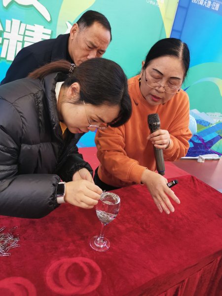 接下來是滿杯水放回行針,看看放多少個(gè)才會(huì)溢出來。有回答放50個(gè)的,老師叫回答者上臺(tái)放50個(gè);接著有人說還能放100個(gè),又上臺(tái)放了100個(gè),還是沒有溢出,最后放到300多根水才溢出來。這一現(xiàn)象背后隱藏著一種有趣的物理原理——液體的表面張力。