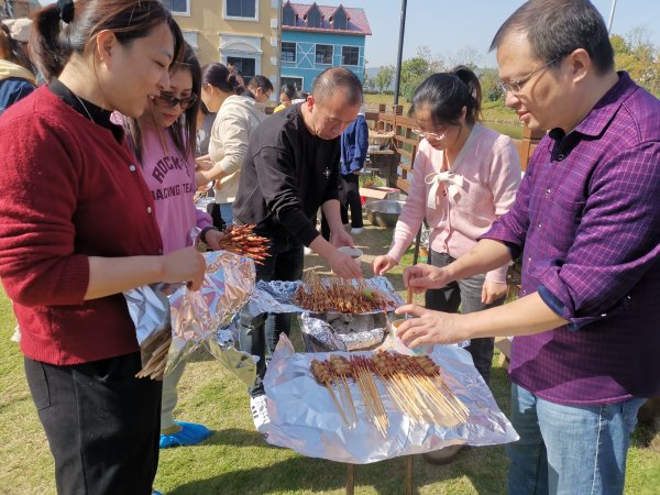 臨近中午,大家拿著自助燒烤食材,各盡所能,自制美味牛排及燒烤。午餐結(jié)束后,大家根據(jù)各自喜好,選擇不同運(yùn)動(dòng)場(chǎng)館進(jìn)行運(yùn)動(dòng),不愛運(yùn)動(dòng)的就帶著魚桿坐在河邊垂釣,帶了小寶貝的員工就到凱凱光光樂園游玩。
