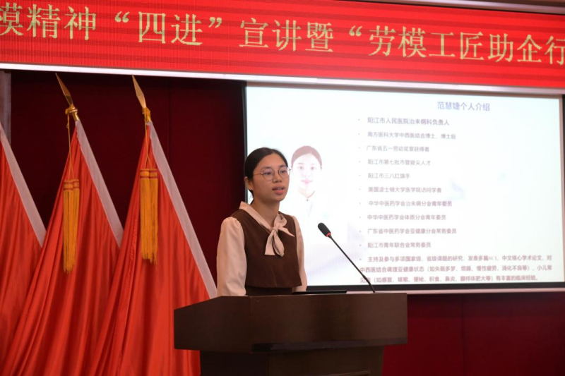 本次活動邀請了廣東省五一勞動獎?wù)芦@得者、陽江市人民醫(yī)院治未病科負(fù)責(zé)人范慧婕作勞模事跡分享。范慧婕博士自扎根陽江后,致力于發(fā)展醫(yī)學(xué)事業(yè),其科研成果不僅標(biāo)志著醫(yī)院科研水平的新高度,更為陽江地區(qū)醫(yī)學(xué)領(lǐng)域首次獲得國家級立項榮譽。身為臨床醫(yī)生,范慧婕盡職盡責(zé),以卓越的技術(shù)和誠摯的態(tài)度服務(wù)于患者,贏得了廣泛好評;作為一名勞模,她以自身的敬業(yè)精神、創(chuàng)新精神、奉獻(xiàn)精神、學(xué)習(xí)精神及團(tuán)結(jié)協(xié)作精神,鼓勵郵政職工樹立高度的政治責(zé)任感和使命感,努力提升自我、不斷探索求新,為企業(yè)的高質(zhì)量發(fā)展貢獻(xiàn)光和熱。