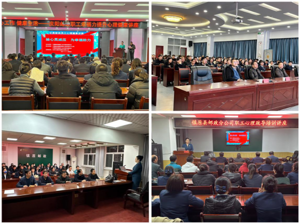 為深入推進集團工會關于開展“送溫暖、送健康”服務工作要求,提升職工心理健康素養(yǎng)和心理健康知識知曉率,慶陽市郵政工會在省郵政工會的統(tǒng)籌安排下,于12月6日和7日晚分別在慶陽市分公司、西峰區(qū)分公司和鎮(zhèn)原縣分公司舉辦了兩場送健康系列心理健康服務講座活動,共有160余名郵政職工參加活動。講座活動邀請了甘肅郵政心理服務項目首席專家、蘭州力道咨詢服務有限公司總經理周志玲作專題講座,周志玲老師圍繞如何做好心理疏導和情緒管理,分析了在日常工作生活中心理壓力產生的根源和各種因素,講授了自我識別、調適壓力及確保心理健康的渠道和方法。通過互動和情景演示,將家庭婚姻關系、親子教育、從多個角度深度解析影響人生幸福力的成因以及緩解對策。周志玲老師的授課語言生動風趣,通俗易懂,互動環(huán)節(jié)趣味橫生,現(xiàn)場氛圍輕松熱烈,大家聽得津津有味,受益匪淺。最后,工會主席朱軍鋒作了總結講話。他指出,開展職工心理健康講座,是工會堅持以職工為中心,加快規(guī)范職工服務中心建設,努力構建“幫扶、維權、服務”三位一體服務體系的重要舉措,通過服務講座向職工普及心理健康知識,不斷提高職工生活品質,增強廣大職工的獲得感、幸福感和安全感。今后,還將繼續(xù)開展心理健康服務講座活動,為更多職工提供心理健康幫助。