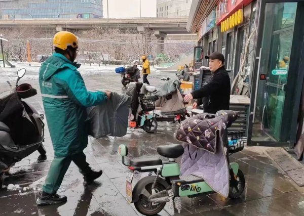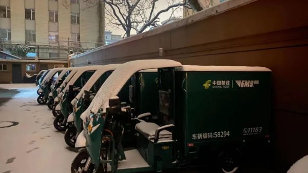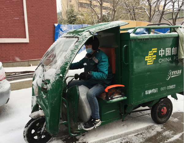 房山區(qū)阜盛西街郵政支局為投遞隊(duì)伍陸續(xù)冒雪出發(fā)掃清障礙。投遞員充分利用小拉車、防水包裝和防雨帆布等工具保護(hù)好郵件。大件包裹根據(jù)用戶要求,貼心送至指定防水位置。在這冰天雪地里,他們成了冬日里最美的風(fēng)景線。