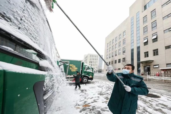 北京郵區(qū)中心在物業(yè)部門的協(xié)助下對兩個(gè)郵運(yùn)車輛停車場的地面積雪進(jìn)行了清掃,對重點(diǎn)點(diǎn)位潑灑了融雪劑,確保車輛及人員的主要出行通道雪停路凈,為郵車的行駛安全提供了良好保障。同時(shí),運(yùn)輸中心管理人員及外包現(xiàn)場負(fù)責(zé)人齊上陣,對新順大院內(nèi)進(jìn)出通道的積雪進(jìn)行了清理,重點(diǎn)對處理中心的交接垛口、院內(nèi)轉(zhuǎn)彎處的積雪進(jìn)行了認(rèn)真清理。 雖然天氣十分寒冷,但是大家干勁十足,你鏟我掃相互配合,忙碌的綠色身影在雪白的道路上交錯(cuò)前行。