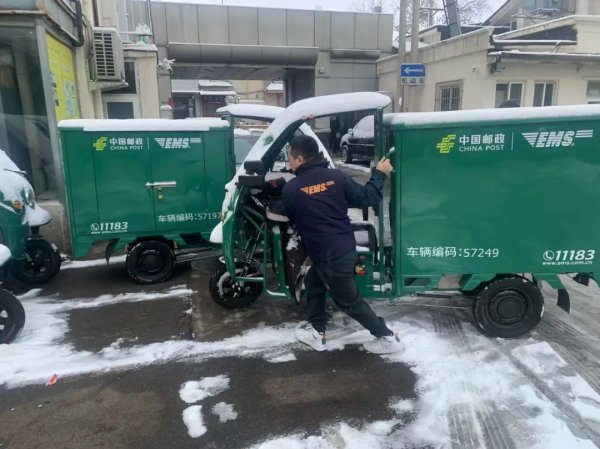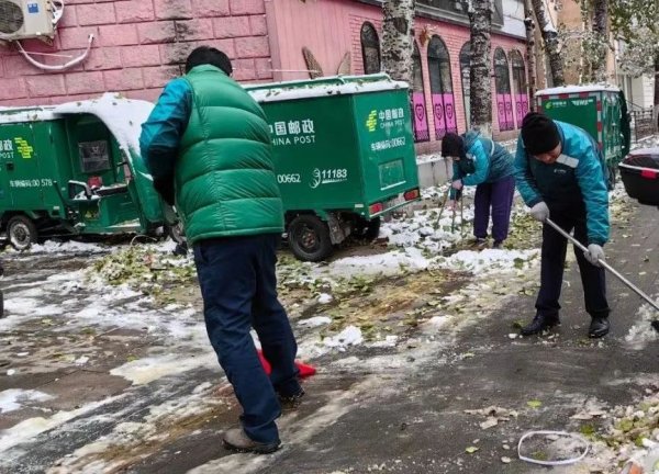 “密切關(guān)注天氣變化,注意低溫、雪情,對車輛和交通帶來的影響,做好車輛每日“三檢”,確保車輛性能正常,外出投遞注意行車安全?!必S臺區(qū)分公司在對雪天通信生產(chǎn)及時(shí)進(jìn)行安全提示的同時(shí),區(qū)分公司班子成員和相關(guān)部室負(fù)責(zé)人第一時(shí)間深入一線掌握情況。安排機(jī)關(guān)人員到業(yè)務(wù)量集中的攬投部協(xié)助內(nèi)部分揀等作業(yè),全力支援一線生產(chǎn)。西羅園郵政支局投遞部姚志成主任一早就到社區(qū)領(lǐng)取了融雪劑,組織大家清掃道路。早上九點(diǎn)多,投遞員陸續(xù)出班,王 洪賀作為投遞部唯一女投遞員,整理好自己的郵件,也跟隨大家一起投遞。