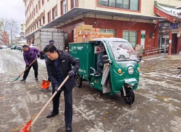 早上8時(shí),延慶區(qū)分公司機(jī)關(guān)部室人員在區(qū)分公司領(lǐng)導(dǎo)帶領(lǐng)下,拿上鐵鍬、掃把等除雪工具,對網(wǎng)點(diǎn)門口及大院停車區(qū)域進(jìn)行積雪清掃,大家有的鏟冰,有的掃雪,1個(gè)小時(shí)的時(shí)間,網(wǎng)點(diǎn)周邊場地、路面積雪和冰面都已被清理干凈。