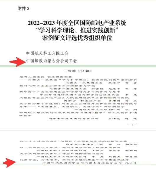 12月11日,內(nèi)蒙古自治區(qū)國防郵電工會(huì)組織開展的“2022-2023年度全區(qū)國防郵電產(chǎn)業(yè)系統(tǒng)‘學(xué)習(xí)科學(xué)理論、推進(jìn)實(shí)踐創(chuàng)新’案例征文活動(dòng)”評(píng)選結(jié)果出爐,內(nèi)蒙古郵政工會(huì)獲評(píng)“優(yōu)秀組織單位”,選送的作品《化瘀行血,打通堵點(diǎn),推動(dòng)工會(huì)組織覆蓋和工作覆蓋雙提升 》獲評(píng)一等獎(jiǎng)。