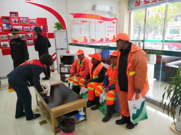 城南支局“郵愛驛站”每天對外開放,站點設施設備俱全,配備了茶幾、沙發(fā),微波爐、冰箱、手機充電器、應急藥品等設施物品,是環(huán)衛(wèi)工人、快遞員、交警、志愿者等廣大戶外勞動者臨時休息的“歇腳點”,服務群眾的“愛心站”,更是黨和人民群眾的“連心橋”。冬日里的一杯熱茶,夏日里的一杯綠豆湯,驛站還為戶外勞動者開展送金融知識、反詐知識等宣傳活動,用真情實意打造戶外勞動者的“幸福港灣”。