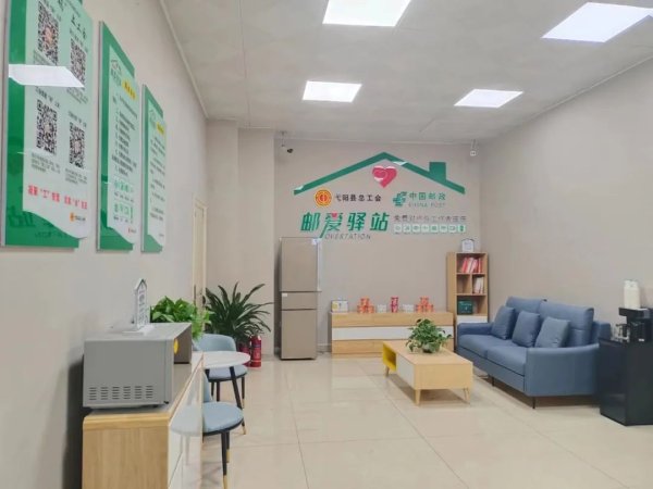 在江西省、市總工會的大力支撐下,弋陽郵政以方志敏同志的為民情懷精神為指引,把“戶外勞動者服務站點”建設作為“我為群眾辦實事”的重要內(nèi)容來推進,依托郵政服務資源,與弋陽總工會共建了城南郵政支局“郵愛驛站”。