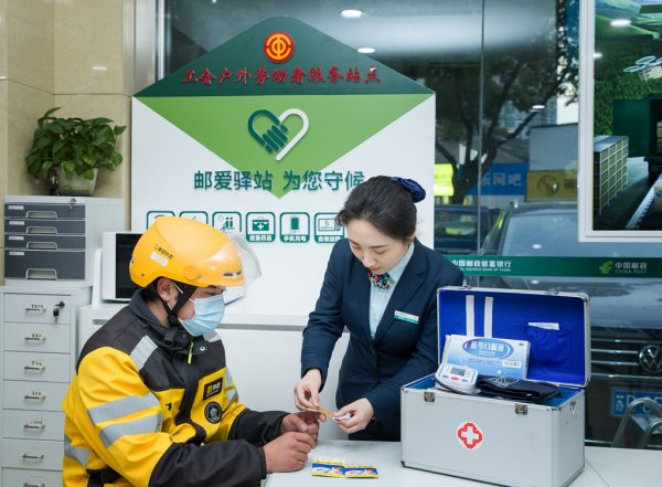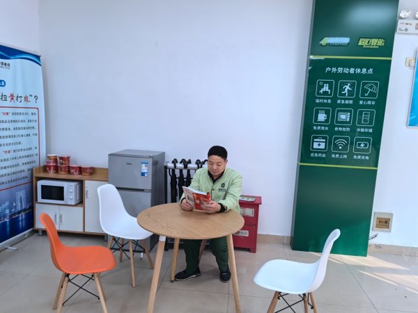 解決戶外勞動(dòng)者“吃飯難、喝水難、休息難”,是“郵愛驛站”最基本的功能。這里,飲水機(jī)、微波爐、小藥箱、冰箱、空調(diào)、桌椅、雨傘等服務(wù)設(shè)施一應(yīng)俱全,吃飯有桌椅、渴了能喝水、熱了能乘涼、冷了能取暖、累了能休息、輕傷能處理,可免費(fèi)上網(wǎng)、免費(fèi)充電、免費(fèi)用藥,給廣大戶外勞動(dòng)者家一般的溫馨。