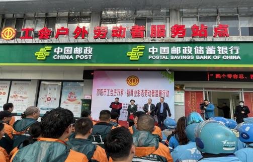12月14日,由湖南省總工會(huì)、湖南省職工幫扶基金會(huì)主辦,邵陽市總工會(huì)承辦的“工會(huì)進(jìn)萬家·新就業(yè)形態(tài)勞動(dòng)者溫暖行動(dòng)”大禮包發(fā)放儀式在邵陽市郵政戴家坪營(yíng)業(yè)所工會(huì)戶外勞動(dòng)者服務(wù)站舉行,市人大常委會(huì)副主任、市總工會(huì)主席羅玉梅,邵陽市郵政分公司黨委書記、總經(jīng)理姜正科出席活動(dòng)。