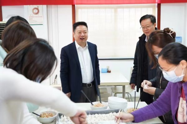 和面、搟皮、拌餡、包餃子……大家分工協(xié)作、動作嫻熟,忙得不亦樂乎!市分公司黨委書記、總經(jīng)理申瑞華,黨委委員、副總經(jīng)理劉宏圖、王開鋒,工會副主席李杰帶領(lǐng)工會會員們積極參與,大家一邊包餃子,一邊聊天,說著“冬至不端餃子碗,凍掉耳朵沒人管”的習(xí)俗,活動現(xiàn)場笑語不斷,洋溢著喜悅祥和的氣息。不一會兒,桌子上就鋪滿了一個個白胖胖的餃子。