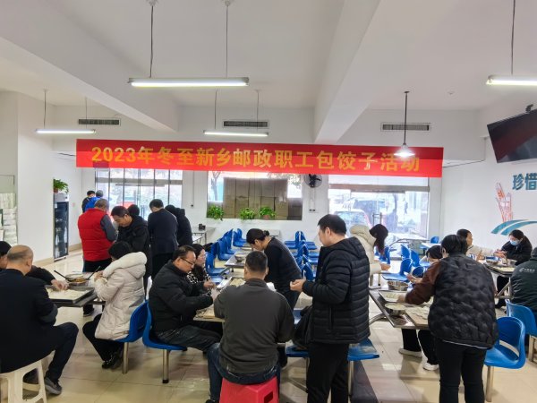 在冬至來臨之際,為讓職工過一個溫暖的傳統(tǒng)節(jié)日,今天上午9:00,新鄉(xiāng)市分公司舉辦了“冬至餃子 溫暖寒冬”包餃子活動。,現(xiàn)場氣氛熱烈協(xié)作分組,各組各負其責,揉面、搟餃子皮、分工合作,配合默契。大家吃著自己親手包的熱氣騰騰的餃子,一邊吃餃子一邊聊天,共同感受大家庭的溫暖。此次活動,滿足一線全體職工餃子供應,暖了職工的心,營造了濃濃的節(jié)日氛圍。(河南省郵政工會)