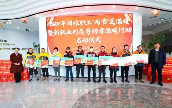 1月3日,2024年困難職工“兩節(jié)”送溫暖暨新就業(yè)形態(tài)勞動者溫暖行動啟動儀式在池州郵政分公司天堂湖支局工會驛站召開,池州市人大常委會副主任、市總工會主席紀良才,池州市民政局黨組書記、局長朱蕓蕓,池州市郵政分公司黨委副書記、副總經(jīng)理王昌武及困難企業(yè)代表、困難職工代表出席儀式。 啟動儀式上,參加活動的領(lǐng)導為集中區(qū)、開發(fā)區(qū)、交運集團、僑銀環(huán)衛(wèi)、快遞等行業(yè)工會和部分困難職工代表發(fā)放了慰問金。為了讓困難職工過上一個溫馨祥和的春節(jié),市總工會還聯(lián)合市慈善協(xié)會共同購買了價值20萬元的本地糧油等生活必需品,向500名困難職工群體發(fā)放新春大禮包,物品供給和配送工作由市郵政公司全力保障。