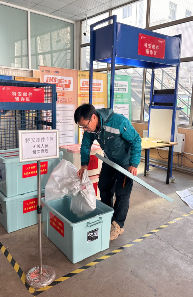 為確保人事檔案的準(zhǔn)確、安全傳遞,北京郵政采取了專網(wǎng)、專車、專人、專用產(chǎn)品、專用包裝的方式,為人事檔案郵件的運(yùn)行提供全方位保障。在寄遞過程中,同城專業(yè)分公司郵政投遞員與檔案專員進(jìn)行點(diǎn)數(shù)簽字后,雙方進(jìn)行郵件交接。 投遞員將人事檔案郵件放入人才交接特安郵件專用箱,并由專人專車進(jìn)行交接,確保郵件的安全性和保密性。投遞員將人事檔案郵件取回至營業(yè)部后,將在特安郵件操作區(qū)收寄檔案。 收寄封發(fā)后,郵袋被放入同城業(yè)務(wù)分公司特制“人事檔案”寄遞項(xiàng)目當(dāng)日遞轉(zhuǎn)運(yùn)承載專用箱,以避免水濕、破損等異常情況。在投遞交接環(huán)節(jié),由專人進(jìn)行投遞交接,公服機(jī)構(gòu)也設(shè)立了專人專崗,需出示人事檔案交接證及簽收人身份證原件,雙重交接證明嚴(yán)格把關(guān)。