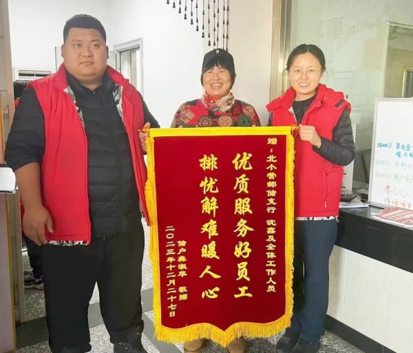 1月1日,用戶龔女士來到中國郵政儲蓄銀行北京順義區(qū)北小營營業(yè)所向全體員工送上一面寫有“優(yōu)質服務好員工 排憂解難暖人心”的錦旗,感謝北小營營業(yè)所幫她守住了“錢袋子”。