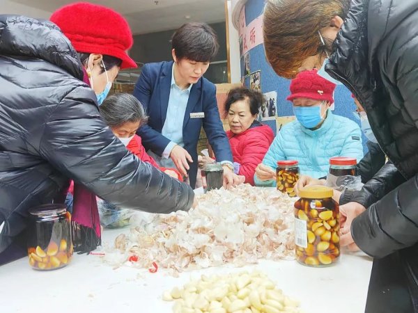 1月18日下午,西單支局邀請周邊鄰居和客戶一起泡制臘八蒜。在支局的活動室,工作人員與老街坊們有說有笑,一邊動手剝蒜,并交流腌制臘八蒜的技巧,分享著節(jié)日的喜悅。同時宣傳網(wǎng)點客戶權(quán)益,深入了解客戶需求,共同營造出一個和諧溫馨的大家庭。當(dāng)大家把剝好的大蒜裝入密封罐中,倒入米醋,進(jìn)行腌制時,活動圓滿結(jié)束。