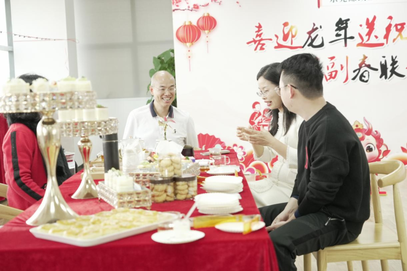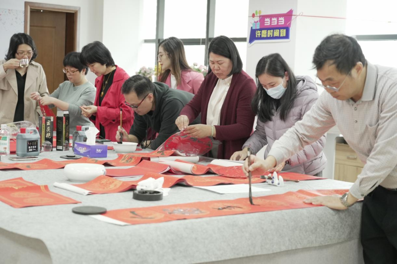 活動現(xiàn)場還設置了甜點美食區(qū)、品茶區(qū)、龍年拍照打卡區(qū)、揮毫潑墨區(qū)四個區(qū)域,讓廣大員工得以用味覺感受春節(jié)年味的文化魅力,用視覺捕捉揮春送福的生活色彩,現(xiàn)場墨香四溢、熱鬧非凡,一片喜慶歡快的景象。