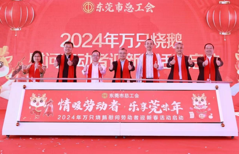 說(shuō)到東莞最火、最具代表性的美食,大家都知道東莞燒鵝出名!皮脆肉細(xì),香味充盈,用經(jīng)典“莞味”陪大家過(guò)年,1月19日上午,2024年?yáng)|莞市總工會(huì)“情暖勞動(dòng)者 樂(lè)享莞味年“——萬(wàn)只燒鵝慰問(wèn)勞動(dòng)者迎新春活動(dòng)在松山湖正式啟動(dòng)!