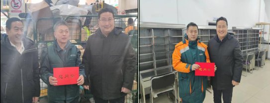 春節(jié)將至,歲寒情深。1月29日,帶著對職工的深情牽掛和新春祝福,內(nèi)蒙古郵政分公司黨委委員、副總經(jīng)理寶勒德一行在赤峰市郵政分公司李國忠總經(jīng)理的陪同下,先后深入寄遞事業(yè)部網(wǎng)路運營中心、新華路支局、橋西支局、寄遞事業(yè)部新華路攬投部、萬達(dá)攬投部、松山攬投部等基層單位開展走訪慰問工作。