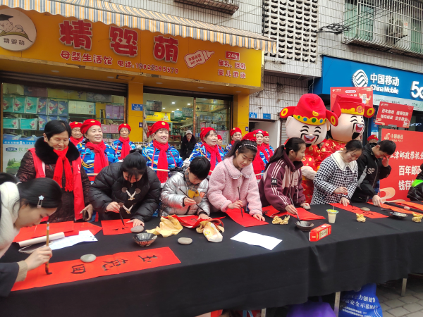 春節(jié)將至、年味漸濃。為大力弘揚(yáng)中華優(yōu)秀傳統(tǒng)文化,豐富職工群眾精神文化生活,1月30日,江津郵政工會聯(lián)合朱楊鎮(zhèn)社區(qū)邀請“小小書法家”們在朱楊鎮(zhèn)街開展“送萬?!みM(jìn)萬家”書法公益活動,為廣大市民和郵政員工寫春聯(lián),送“福”字,送上濃濃的新春祝福。