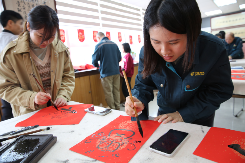春節(jié)將至,歲寒情深。為營(yíng)造濃厚的節(jié)日氛圍,給員工送上新年美好的祝福,2月1日,廣州郵區(qū)中心工會(huì)開(kāi)展“揮毫迎新 春滿郵區(qū)”——揮春送?;顒?dòng),為員工現(xiàn)場(chǎng)揮毫贈(zèng)春聯(lián)、送福字,為即將到來(lái)的甲辰龍年渲染上濃濃“年味”。