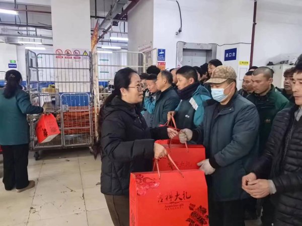 春節(jié)將至,年味漸濃。2024年2月1日普陀區(qū)分公司領(lǐng)導(dǎo)班子走訪生產(chǎn)一線,開展迎新春送溫暖慰問(wèn)員工工作,為員工送上新春大禮包慰問(wèn)品,把深切的關(guān)心及新年美好祝福帶給普陀區(qū)分公司全體員工。普陀區(qū)分公司黨委副書記李穎,工會(huì)主席馮萍,紀(jì)委書記俞曉燕,副總經(jīng)理胡斌,普陀區(qū)寄遞事業(yè)部副總經(jīng)理竺君毅、周峻竑,分六路前往各支局、營(yíng)業(yè)部、商務(wù)遞、大宗處理點(diǎn)等單位進(jìn)行慰問(wèn)。領(lǐng)導(dǎo)們細(xì)心察看工作生產(chǎn)場(chǎng)地環(huán)境,安全防護(hù)用品設(shè)施,關(guān)心投遞員工近期工作情況,關(guān)心春節(jié)回家過(guò)年的員工車票行程是否安排好,送上新春祝福。