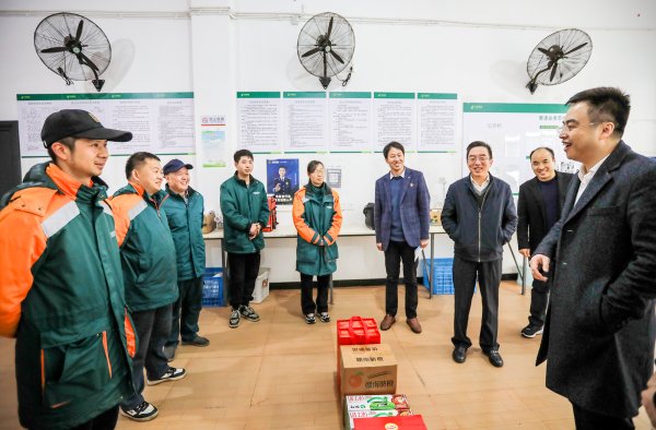 在信州區(qū)分公司萬達(dá)攬投部,王彥超與一線攬投員們一一握手,親切交談,仔細(xì)了解工作和生活情況,對寒冷天氣下始終堅(jiān)守崗位的攬投員們表示感謝,并送上新年的祝福;向部站負(fù)責(zé)人了解2023年業(yè)務(wù)收入、攬投員投遞攬收模式等情況,對攬投部銷售化轉(zhuǎn)型工作開展和直分直投的操作模式表示認(rèn)可,高度贊揚(yáng)了攬投部員工辛勤工作、勇于奉獻(xiàn)的拼搏精神,再三叮囑攬投員在外投遞出行要注意保暖和安全。