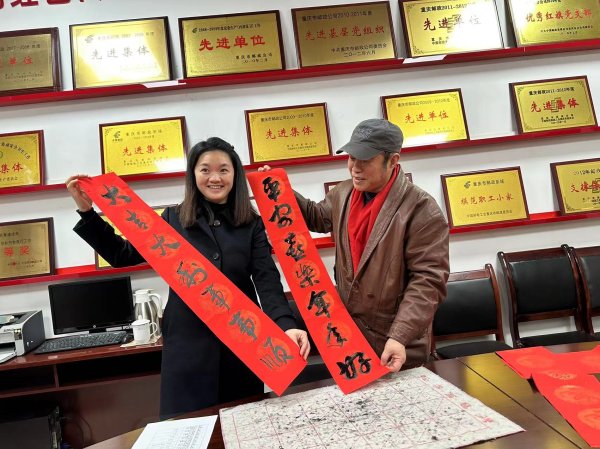 2月7日,重慶郵政機(jī)要通信局工會(huì)在機(jī)要局院內(nèi)組織開(kāi)展“送萬(wàn)福、進(jìn)萬(wàn)家”書(shū)法公益活動(dòng),特邀書(shū)法家劉江生老師現(xiàn)場(chǎng)為全體員工書(shū)寫(xiě)春聯(lián)、“?!弊?。