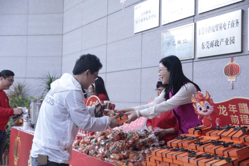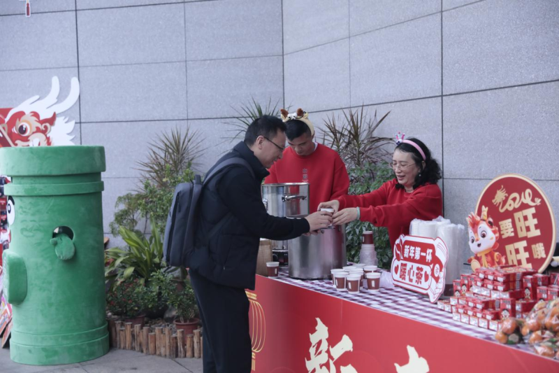 當天,東莞市郵政工會為了給員工們營造喜慶放松的開工氛圍,在辦公大樓外設置了2024要“襪”塞、新年第一杯暖心茶、2024要旺旺、大吉大利、龍行龘龘前程朤朤五個“開工驚喜”區(qū),新年祝福音樂圍繞著整個郵政樓,工會主席及一眾干事為返崗員工親手送上開工小驚喜。